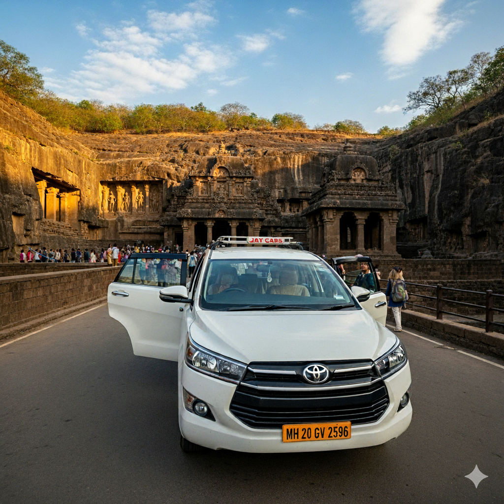 Day 2: The Spiritual Harmony of ElloraOn the second day, we’ll take you to the magnificent Ellora Caves. This site is unique as it houses caves dedicated to three different religions: Buddhism, Hinduism, and Jainism. The highlight is the breathtaking Kailasa Temple (Cave 16), a monolithic structure carved out of a single rock—an incredible feat of human engineering and devotion.Beyond the caves, your personalized itinerary will include other significant local sights that complete your Aurangabad experience.Why Choose Jaycab.in?We are a trusted name in cab services in the region, known for our commitment to customer satisfaction. We prioritize your safety, comfort, and peace of mind. Our straightforward booking process and transparent pricing make planning your trip a breeze.Ready to book your historical adventure?